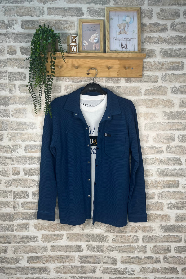 13-16 Yaş Erkek Çocuk Lacivert Oversize Gömlek Ceket Tişörtlü Takım