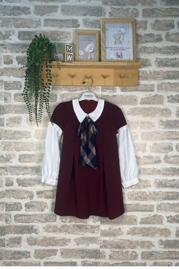 Şık ve zarif tasarımıyla öne çıkan bu kız çocuk elbise, 2-5 yaş arası kız çocukları için özel olarak tasarlanmıştır. Kravat detaylı yakası ve bordo rengiyle klasik bir görünüm sunan kız çocuk elbise, hem günlük kullanım hem de özel günler için idealdir. Uzun kollu yapısı sayesinde mevsim geçişlerinde rahatlık sağlayan kız çocuk elbise, yumuşak dokulu kumaşı ile gün boyu konfor sunar. Şıklık ve rahatlığı bir arada arayan ebeveynler için bu kız çocuk elbise, dolapların vazgeçilmez parçalarından biri olacaktır.