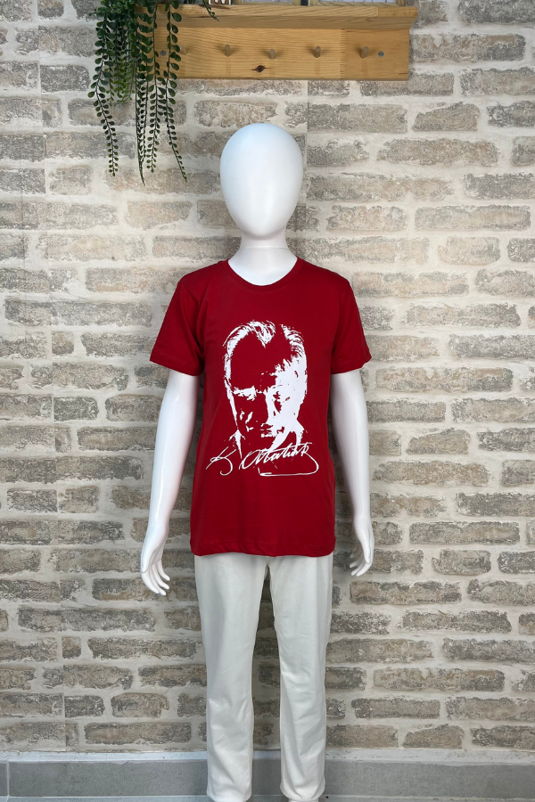 23 Nisan Çocuk Tişörtü 5-12 Yaş – Atatürk Baskılı Kırmızı Özel Gün Tişörtü
