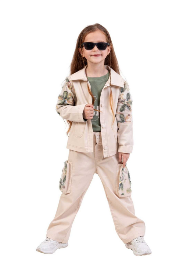 5-8 yaş kız çocuk takım arayan aileler için tasarlanan bu şık kombin, desenli ceket ve pantolon uyumuyla hem rahat hem de modern bir stil sunar. Günlük kullanım ve özel anlar için ideal olan 5-8 yaş kız çocuk takım, kız çocuklarının enerjik tarzını yansıtır.