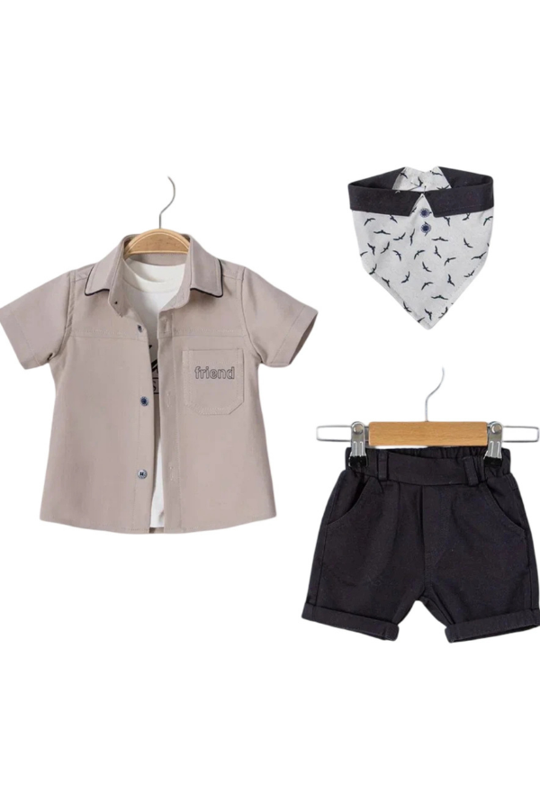 6-18 Ay Erkek Bebek Takımı Gömlekli Şortlu Bandanalı 3’lü Şık Kombin