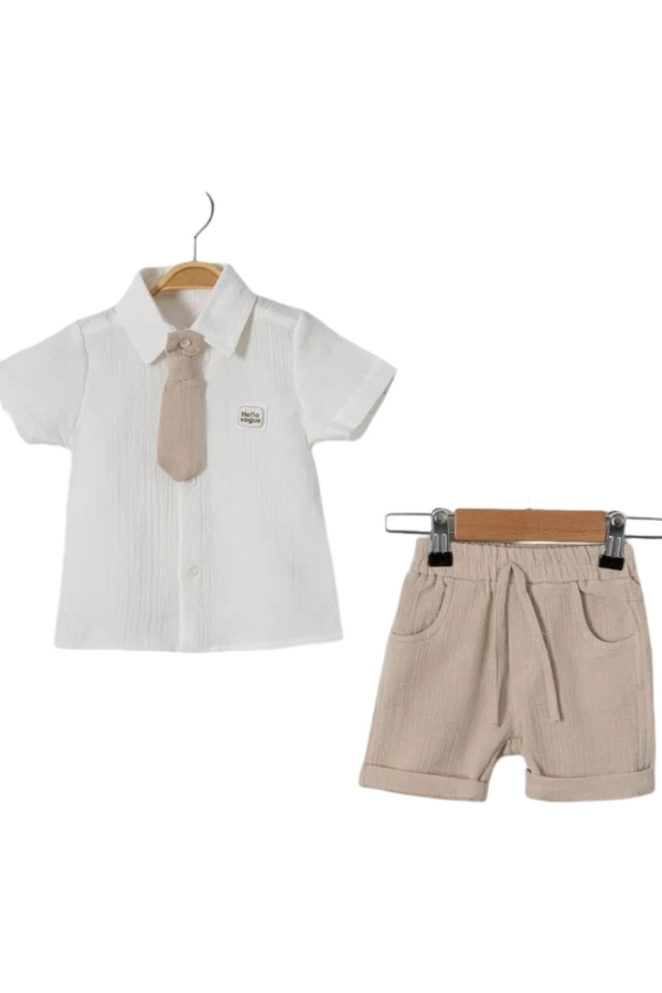 6-18 Ay Erkek Bebek Takımı Kravatlı Gömlekli Şortlu Şık 2’li Kombin