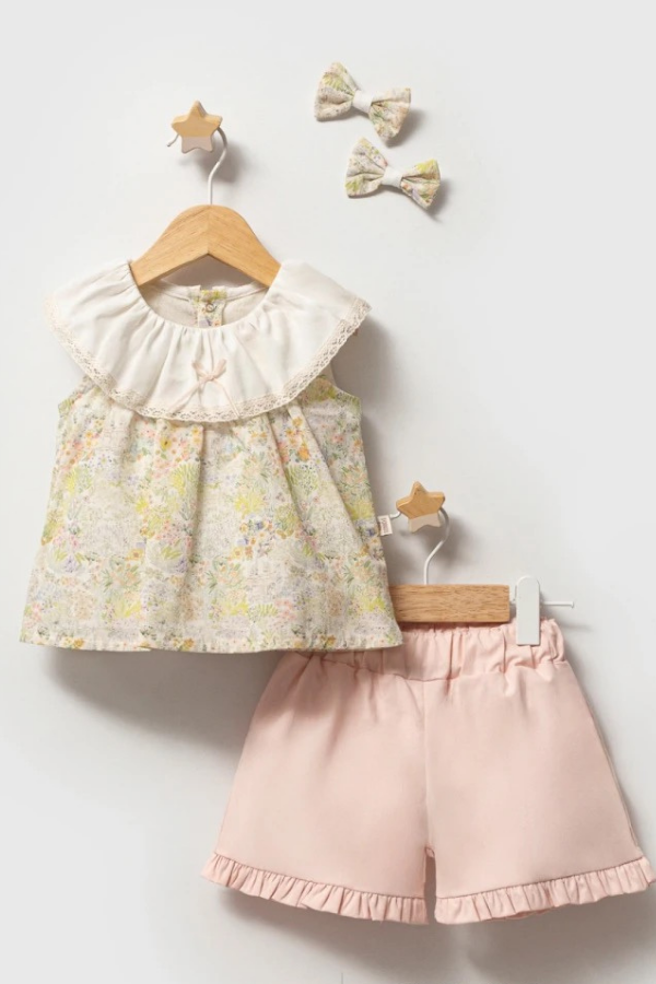 6-36 Ay Kız Bebek Elbise Takım Çiçek Desenli Şortlu 3’lü Bebek Kombini