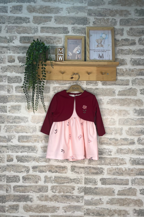 9-24 Ay Kız Bebek Elbise Takım Bolerolu Desenli