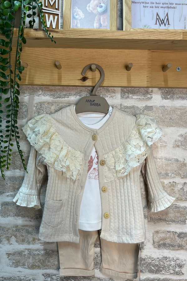 Zarafetin En Saf Hali: Dantel Detaylı Kız Bebek 3'lü Takımı
