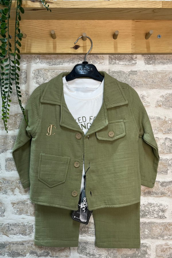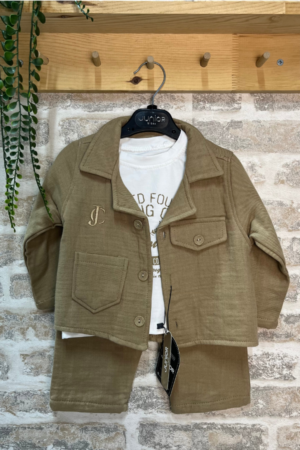Erkek Bebek Takım 9-24 Ay Haki Renk Şık Ceketli Bebek Kombini