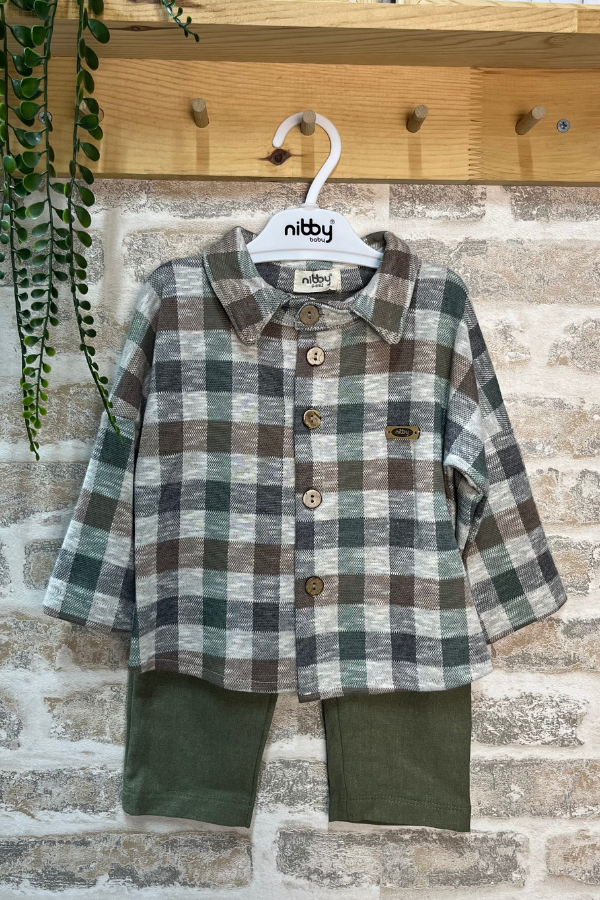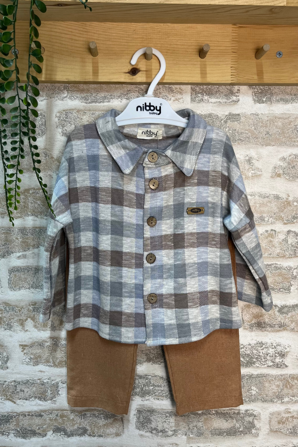 Erkek Bebek Takımı 6-24 Ay – Ekose Gömlekli, İki Renk Seçenekli Şık Kombin