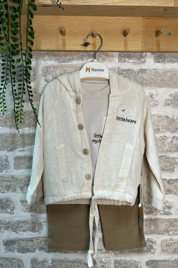 9 ay ile 24 ay arası erkek bebekler için özel olarak tasarlanan bu erkek bebek takımı, konforlu yapısı ve sade şıklığıyla öne çıkar. Kapüşonlu üst, iç tişört ve uyumlu alt parçadan oluşan kombin, bebeğinizin gün boyu rahat hareket etmesini destekler. Yumuşak dokulu kumaşı sayesinde hassas bebek cildiyle uyumludur ve kullanım sırasında rahatsızlık hissi oluşturmaz.